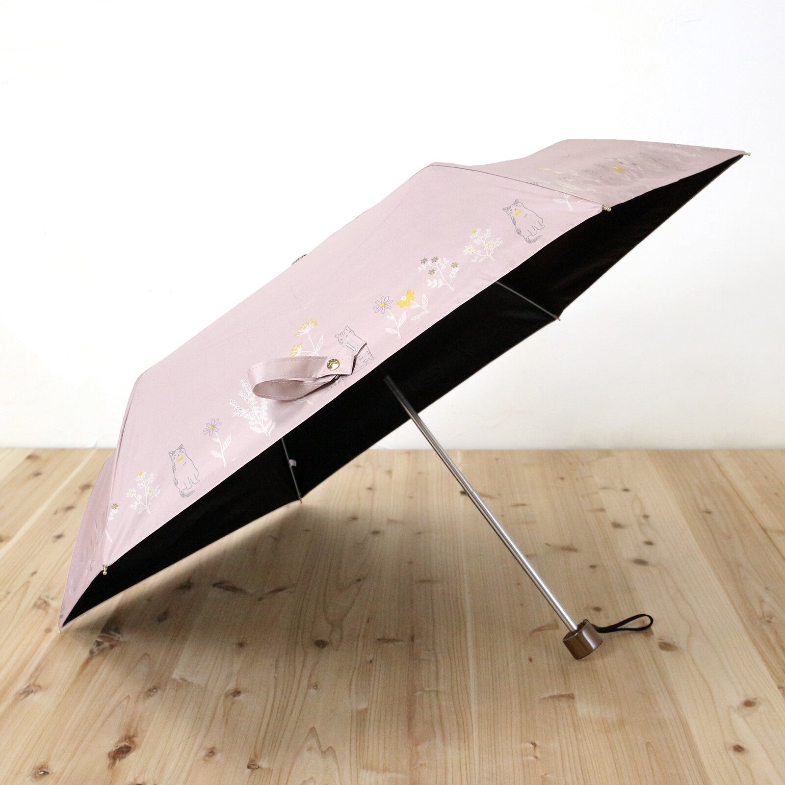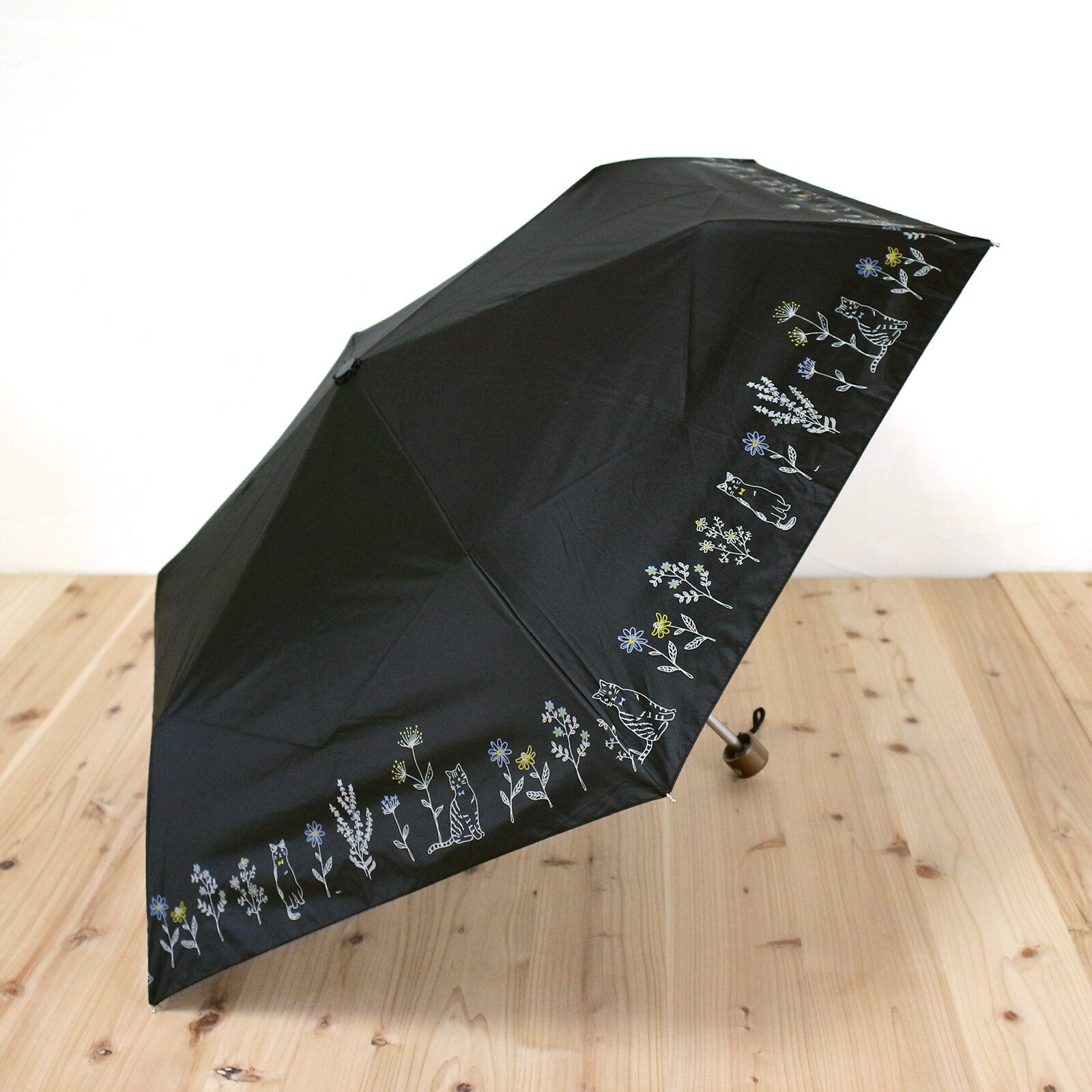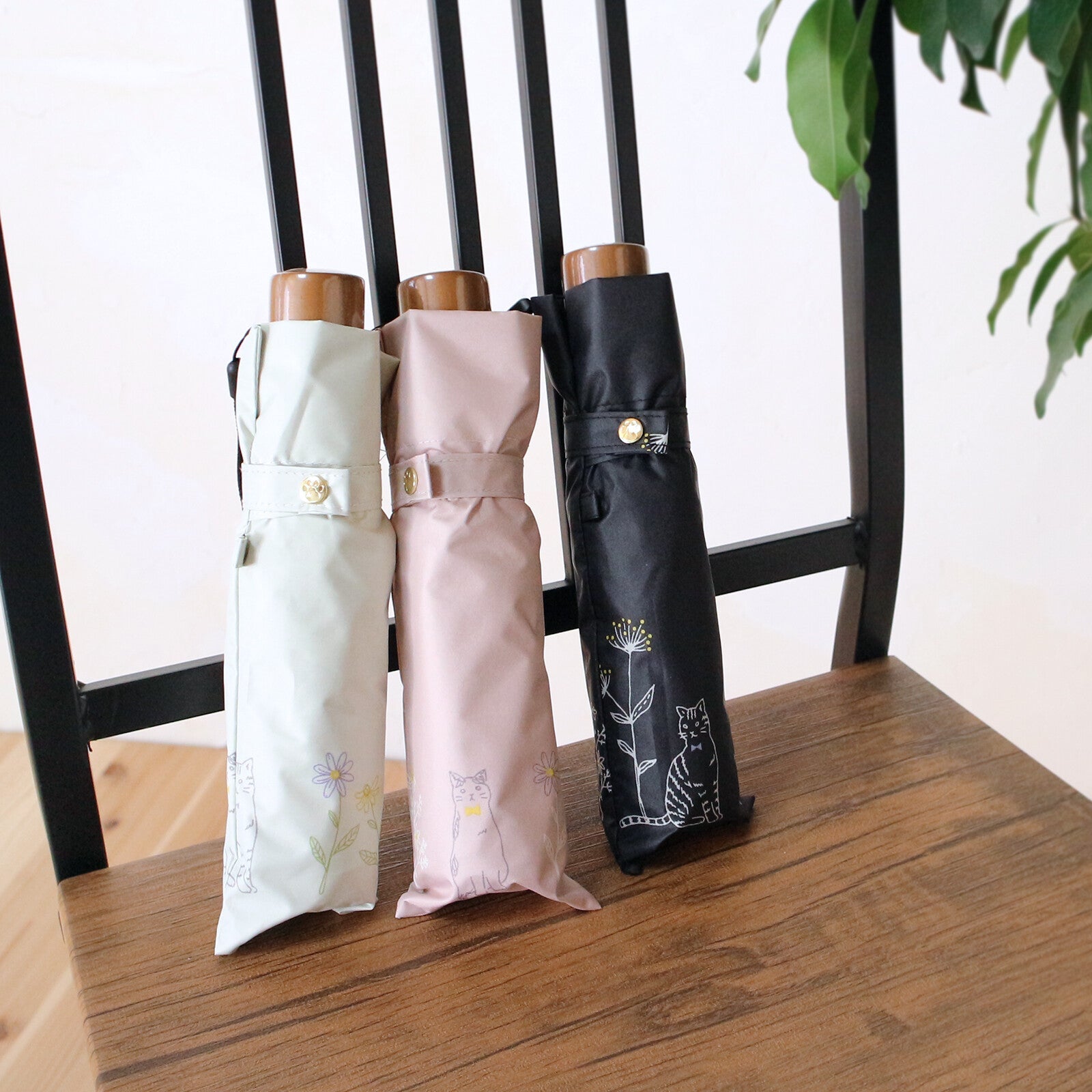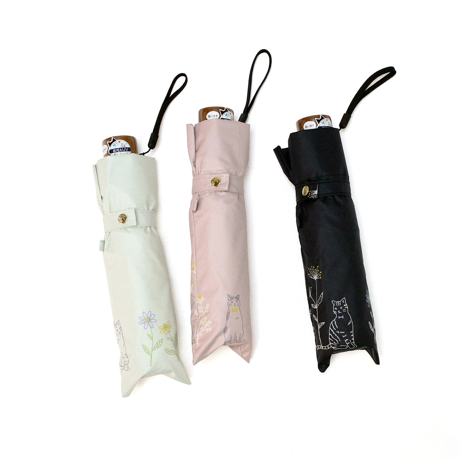 遮光·隔熱 晴雨兩用黑色塗層◎50cm防風植物貓折疊傘 防UV